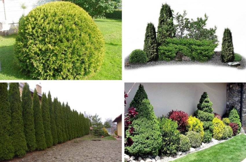 При своевременной обрезке и жёстком контроле ежегодного прироста (достигает до 30 см) можно сформировать тую в виде фигурных кустов для живой изгороди.