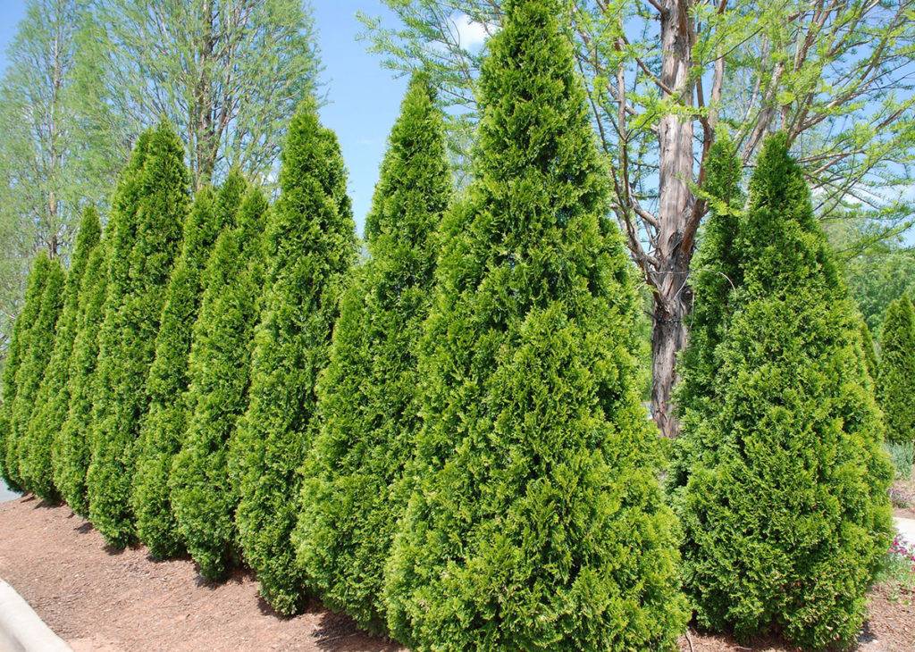 Смарагд – дерево с конической формой. Хвоя изумрудно-зелёная, крона плотная. Популярен в городах с умеренным климатом, потому что устойчив к нестабильной погоде. Скорость роста – от 15 до 25 сантиметров в год.