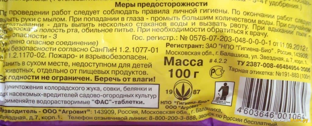 По инструкции последнее опрыскивание (время ожидания) проводят не позднее, чем за 5 дней до уборки овощей.
