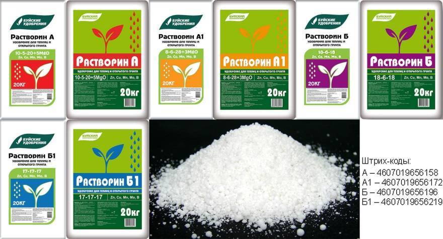Марки различаются процентным соотношением компонентов в зависимости от вида проводимых работ и фаз развития посаженных культур. Так, при слабом росте помидоров применяют вариацию «А», а в период плодоношения – «Б».