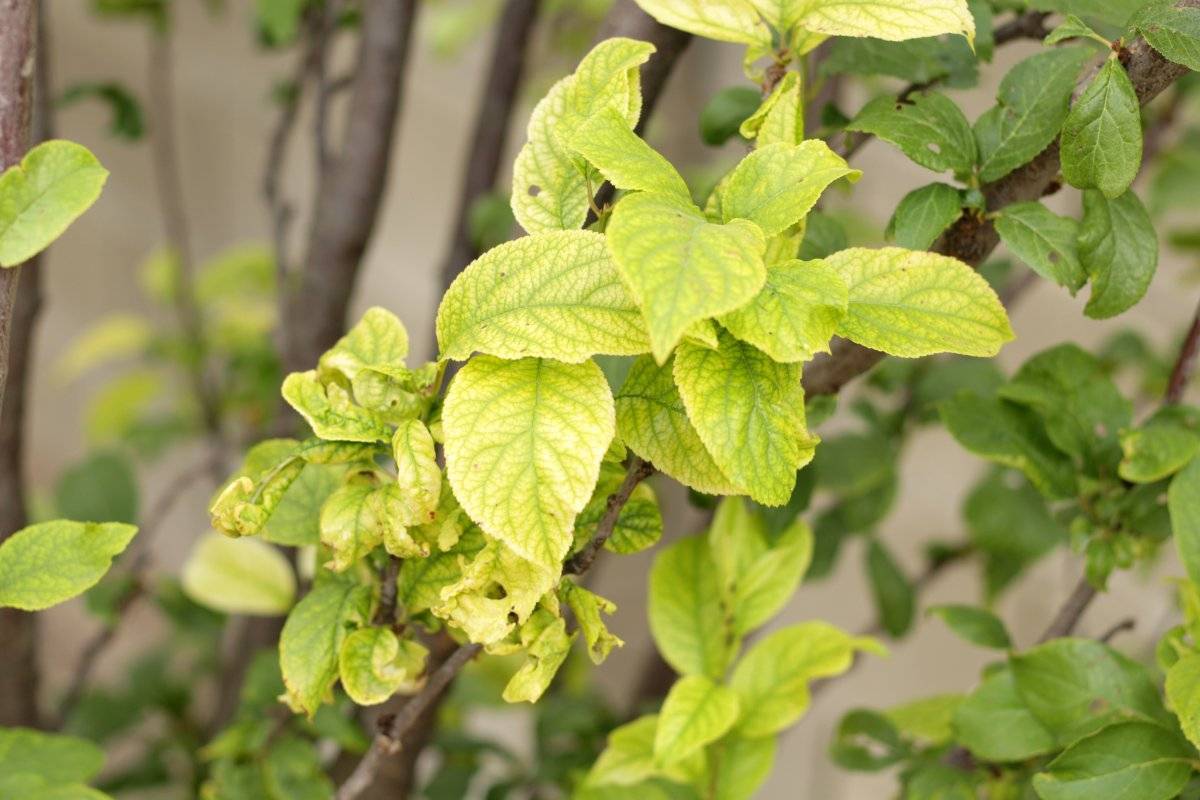 - дефицит азота — листва бледно-зелёного или желтоватого цвета, преждевременное опадение и ухудшение вкуса плодов;