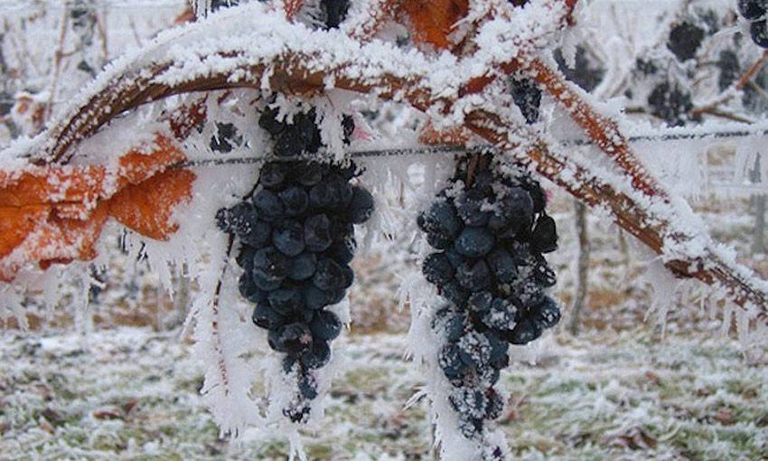 Также важно понимать, что какая бы ни была зимоустойчивость винограда, наледь, образующаяся при околонулевых температурах представляет для него гораздо большую опасность в зимнее время. Лёд приводит к механическому разрушению верхнего слоя коры и древесины винограда
