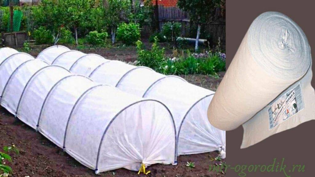 Если укрывной материал достаточно плотный, то из него можно сделать небольшую теплицу