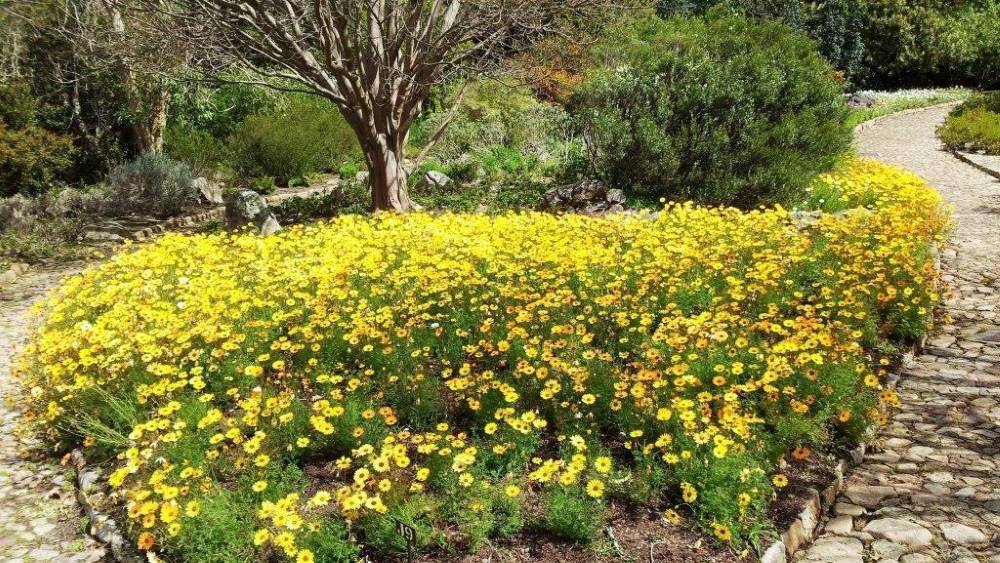 - урсинию разноцветковую (ursinia anthemoides subsp. versicolor), формирующую высокие, полуметровые кустики с золотистыми пятисантиметровыми корзинками соцветий, сидящими на тонких стройных цветоносах; корзинки выглядят очаровательно благодаря темному пятну у основания язычковых цветков, перекликающемуся с коричневым центром из трубчатых цветков.
