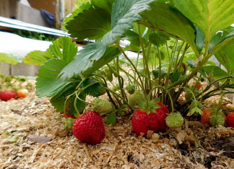 Органическая мульча способствует повышению урожайности и вместе с тем сокращает время, затрачиваемое на уход за клубникой. Самыми популярными органическими материалами являются солома, вялая трава, перепревшие опилки. Насыпать органику следует слоем в 4–8 см.