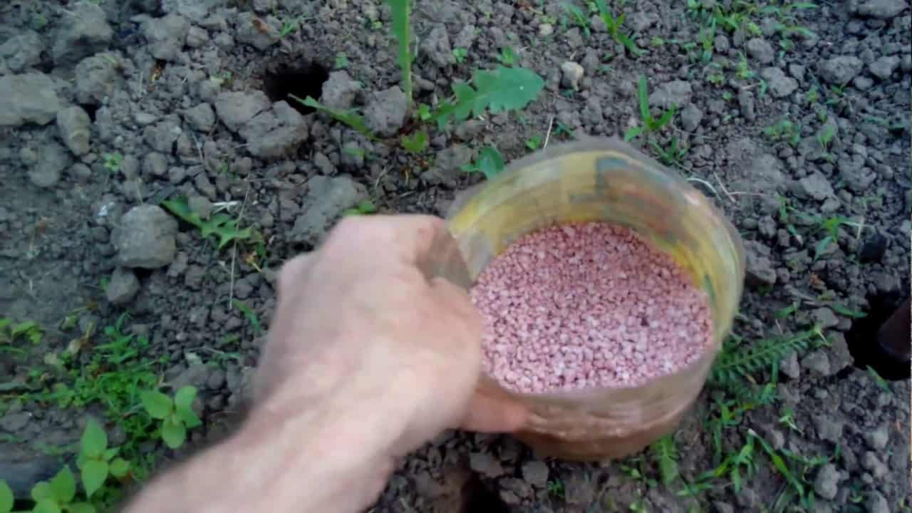 - В лунку укладывают землю, смешанную с удобрениями: такой смесью заполняют углубление на треть.