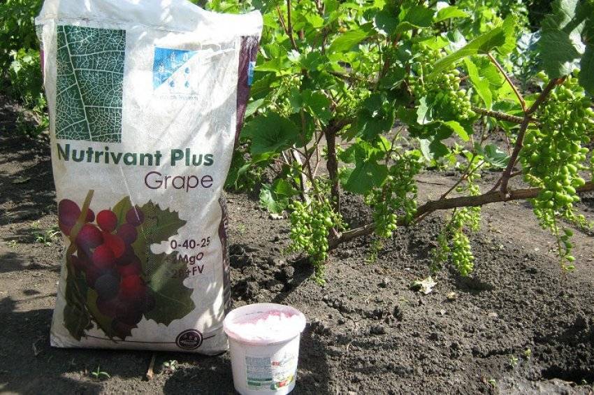 Перед посадкой винограда в грунт рекомендуется добавлять органические удобрения. Также можно применять минеральные препараты. Однако их рекомендуется растворять в воде.
