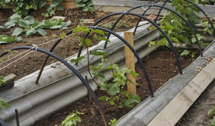 При выращивании винограда в северных районах с неблагоприятным климатом, кусты сажают с заглублением. Это не только поможет их защитить, но и упростит процедуру укрытия на зиму.