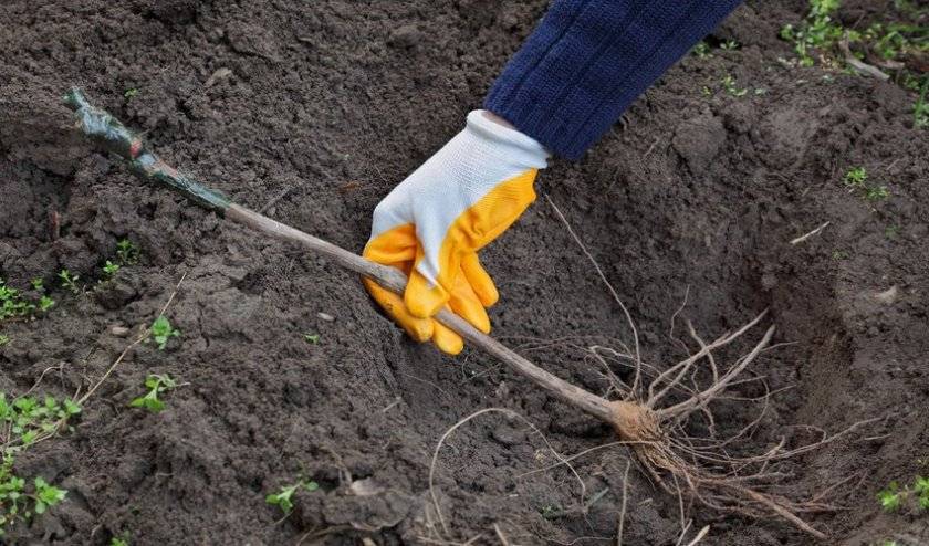 При посадке важно проконтролировать то, чтобы 2 глазка приходилось чуть выше уровня края выкопанной ямы. Корневые отростки равномерно расправляют и аккуратно засыпают питательным грунтом