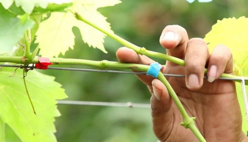 - Для двуплечего кордона выращивают многолетнюю лозу с 2 массивными стеблями. На каждом весной появляется свежий прирост.