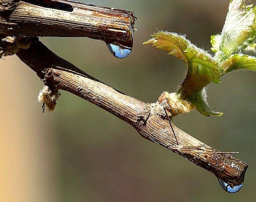 Первое время после обрезки винограда внимательно наблюдайте за ним. Если на местах среза появился «плач» лозы, обработайте их специальным садовым воском. Это предотвратит попадание бактерий и защитит почки, расположенные ниже срезов. При затяжном плаче может понадобится дополнительный полив, хотя такое состояние может зависеть и от особенностей сорта винограда.