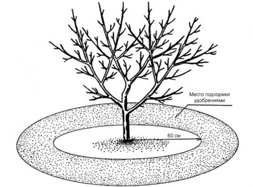 Подпитка необходима для хорошего плодоношения, начальный этап проводится по истечении двух лет после высадки. Весной вносят перепревший компост, селитру, а осенью суперфосфат, хлористый калий. Подпитка выполняется строго согласно инструкции, на хорошо увлажненный грунт.
