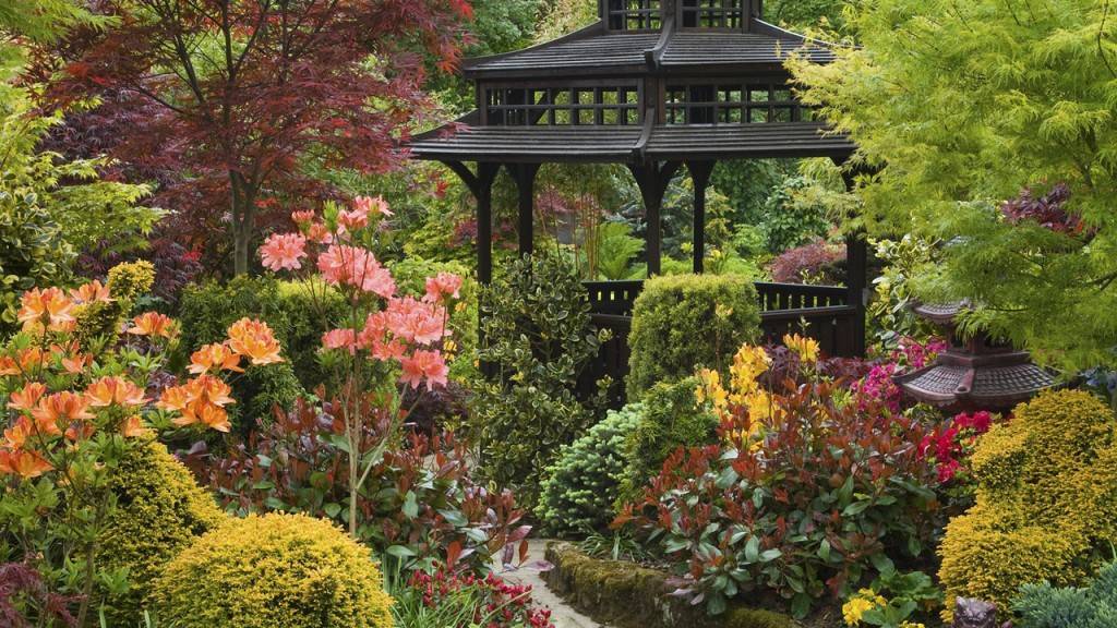 Буйство красок в растительном окружении беседки