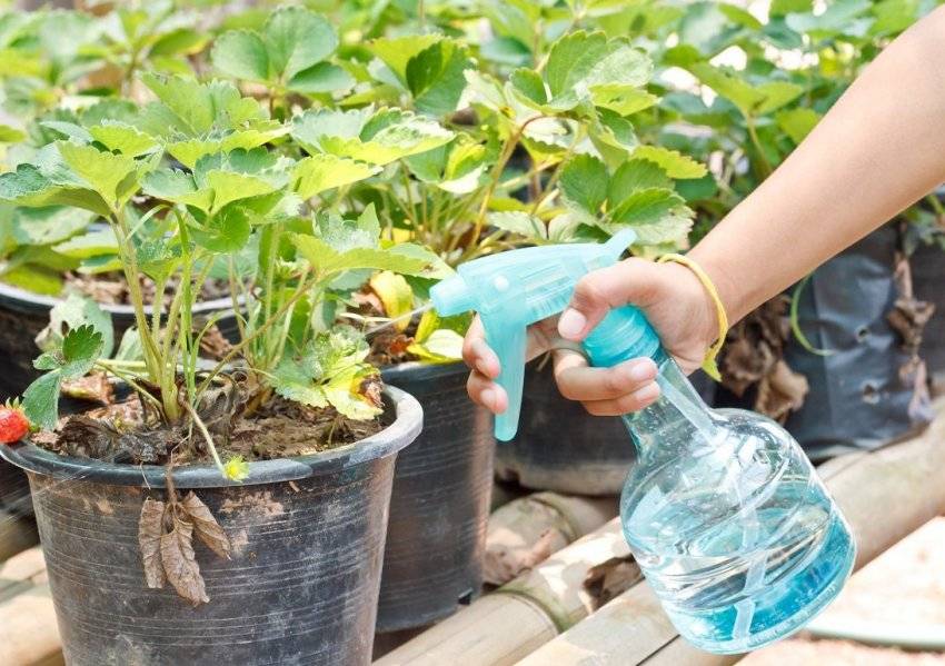 Ухаживают за земляникой в мешках так же, как и за горшечной культурой.
