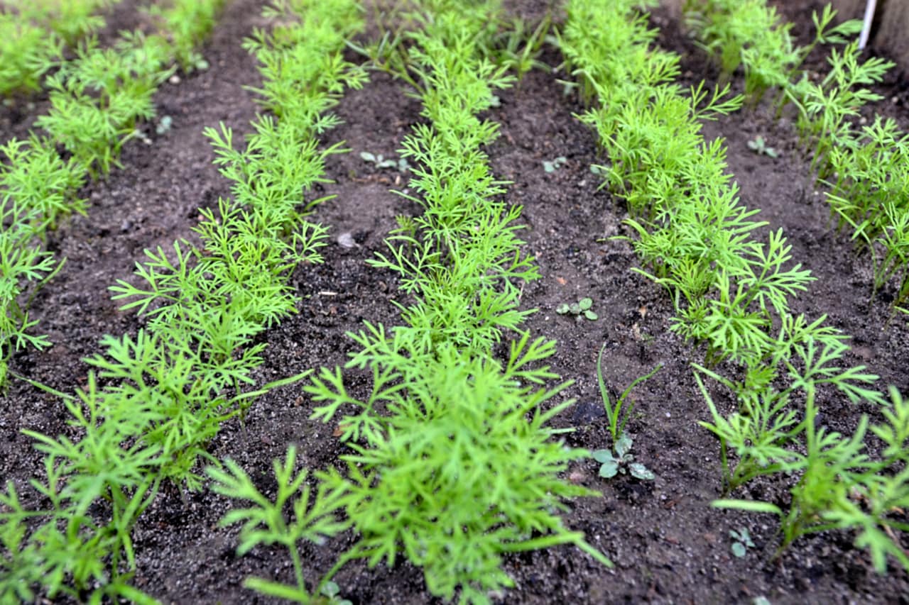 Повторяйте процедуру после образования двух пар листов, но только уже увеличивайте дистанцию между морковками в два раза.