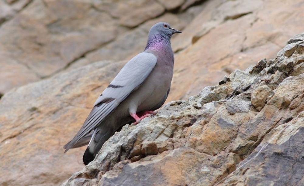 Расцветка скалистого голубя совпадает с сизым. Отличия лишь в том, что у скалистых хвост значительно светлее, а клюв — черный.