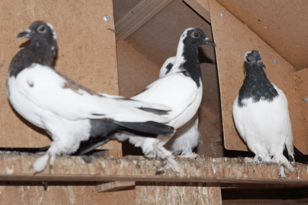 Немецкая порода голубей. Декоративный вид, но при обучении могут красиво летать.