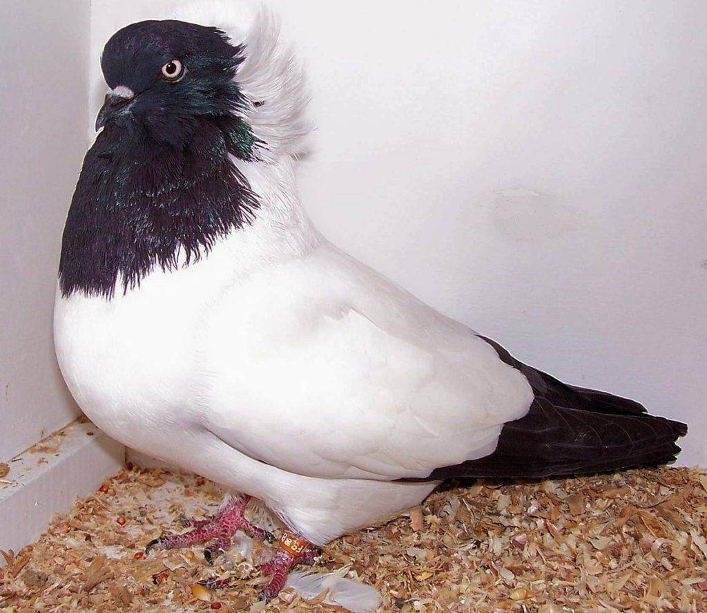Контрастное сорочье оперение – изюминка породы. По стандартам, турман может быть с хохлом и без хохла.