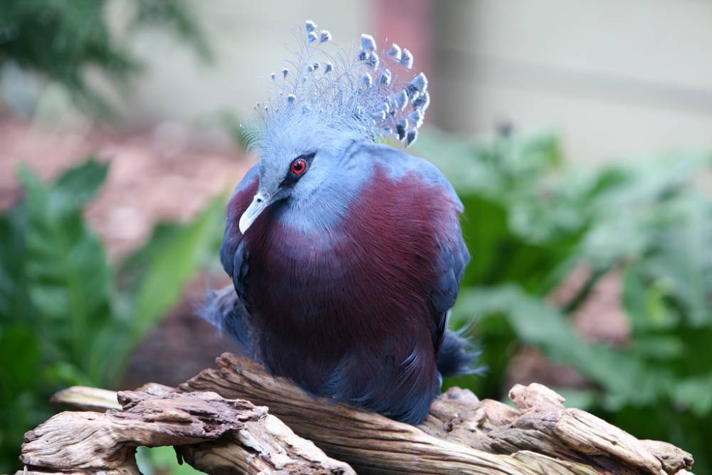 Венценосный голубь считается самым красивым видом семейства голубиных. Все из-за хохолка на его голове. По размерам он в три раза больше самой головы.
