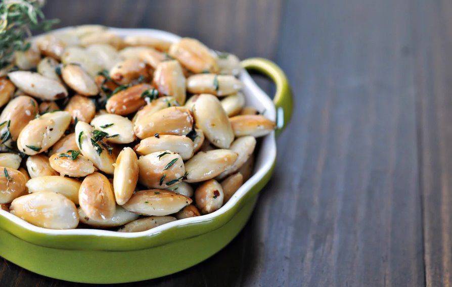 Жареные миндальные ядра вкусны сами по себе, однако при добавлении других ингредиентов, получается новый, интересный вкус.