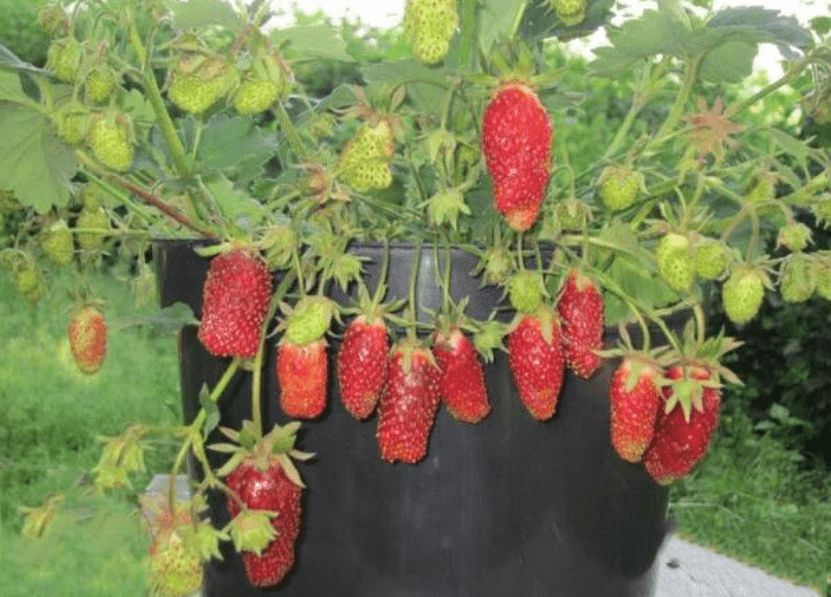 - невероятная изящность больших кустов (в период цветения грядка земклуники выглядит как клумба с цветами) и утонченная продолговатая форма с большими ягодами;
