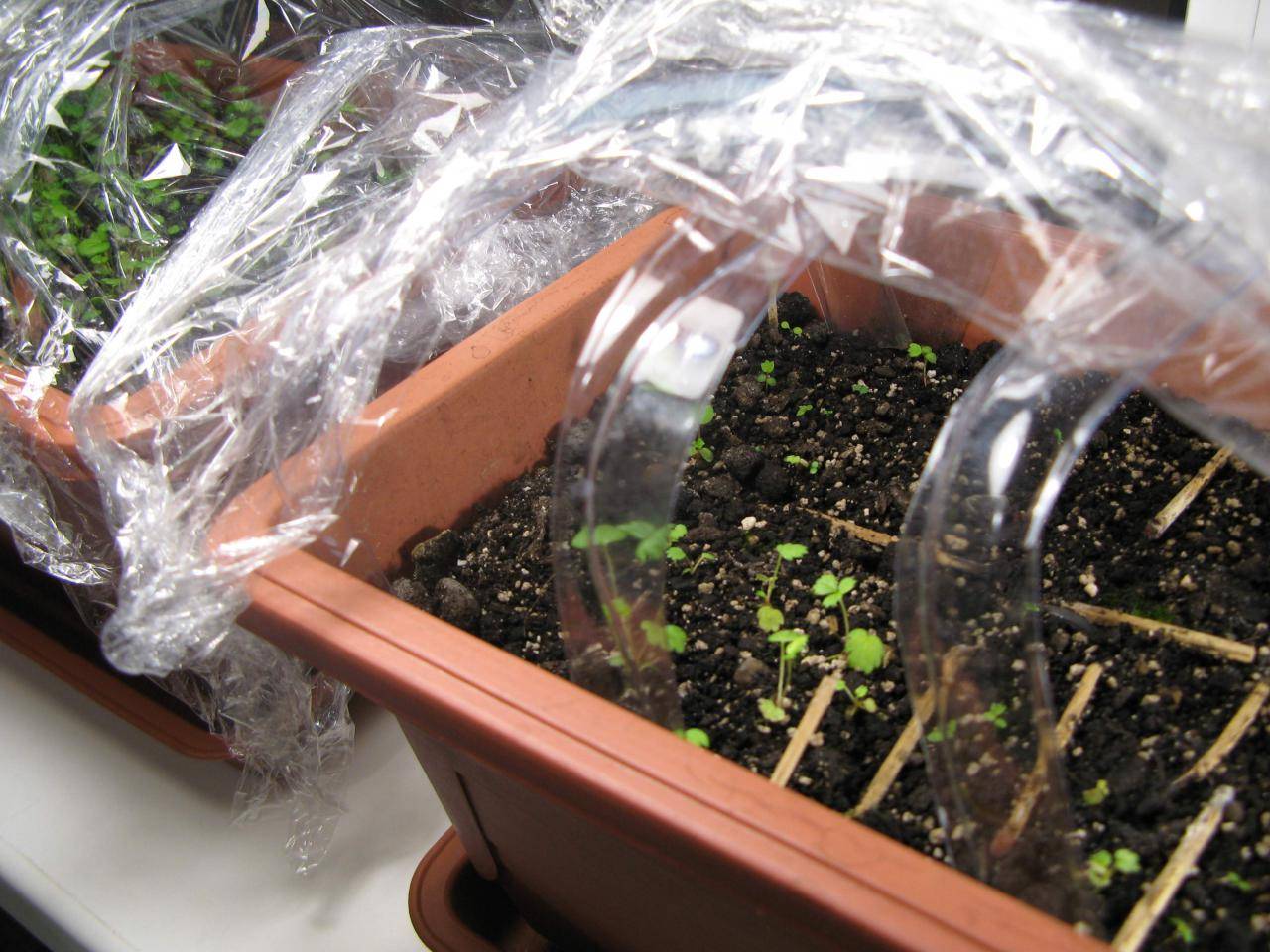 - Покрывание емкости с семенами полиэтиленовой пленкой или стеклом.