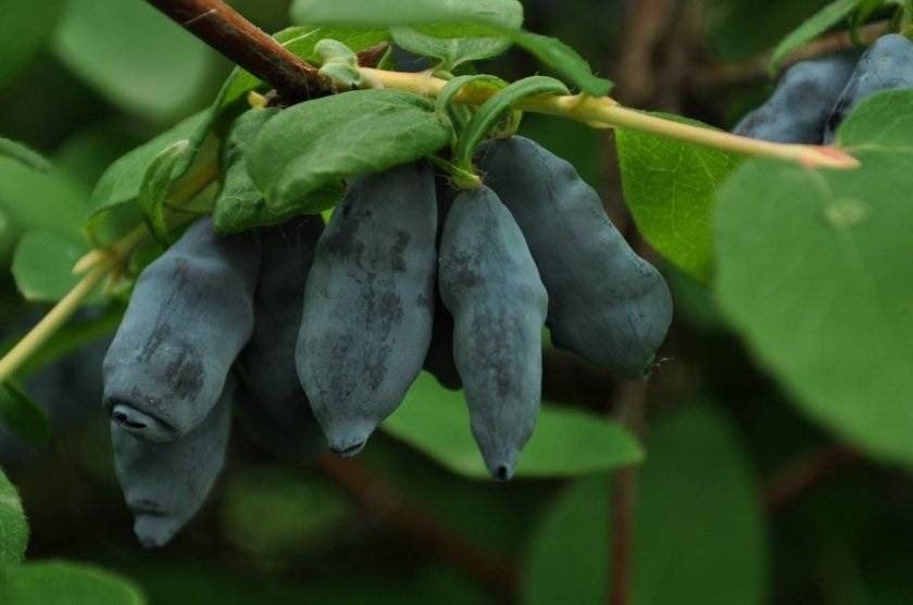 Плоды жимолости сорт ‘Голубое веретено’. Фото с сайта sortoved.ru