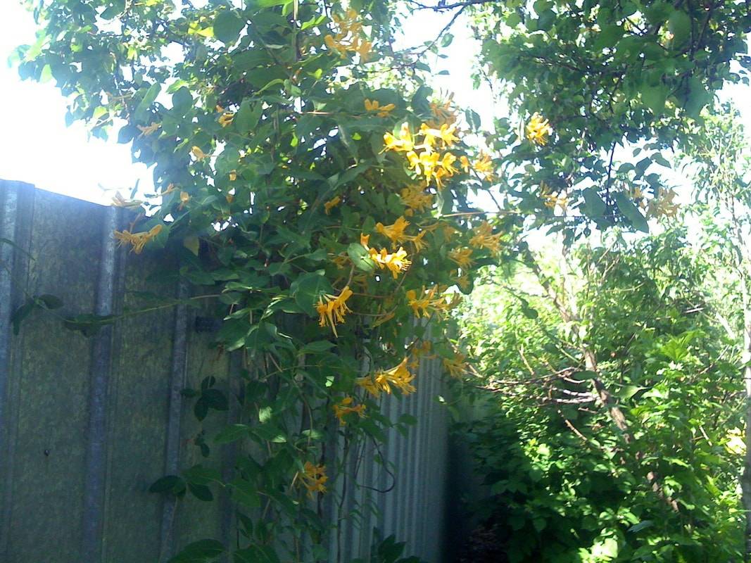 Гибкие побеги жимолости Каприфоль используют в качестве опоры любой забор или стену, это позволит замаскировать неэстетичность построек и сооружений